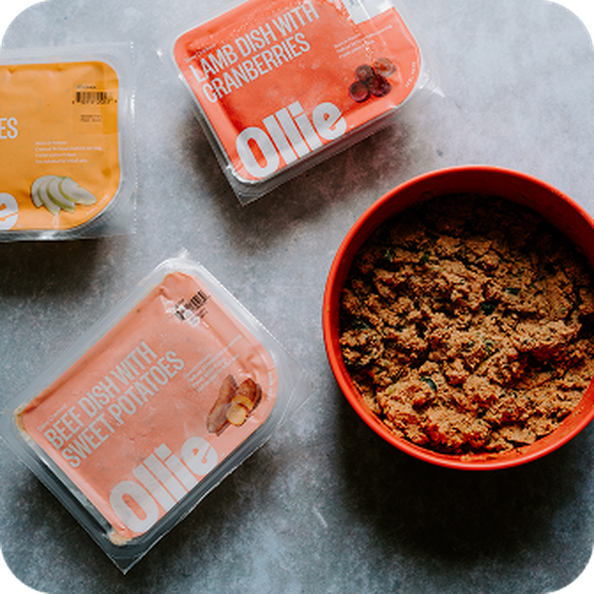 Ollie’s meals are built around human-grade proteins like beef, chicken, turkey, lamb, and pork, paired with vegetables, fruits, and superfoods such as spinach, lentils, and blueberries. Recipes are AAFCO-compliant, developed by veterinary nutritionists, and designed to be highly digestible with no fillers, by-products, or artificial preservatives. Customers can choose between gently cooked fresh meals or Ollie’s baked recipes, which offer longer storage but the same ingredient standards.